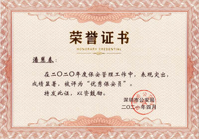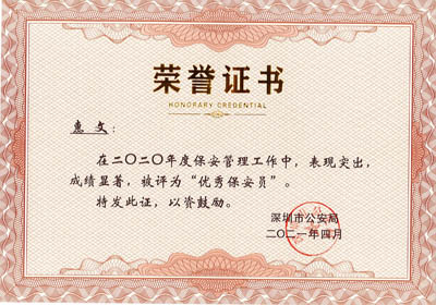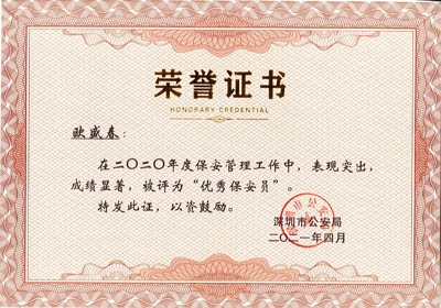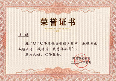 榮獲2017-2023年度深圳市公安局優(yōu)秀保安公司,深圳市保安協(xié)會常務(wù)理事單位(十大常務(wù)理事單位之一)