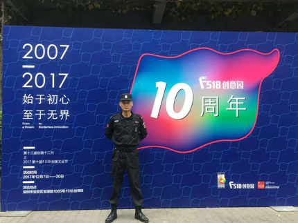 深圳F518時尚創意園是深圳市和寶安區“十一五”規劃的重點文化產業項目,園區位于寶安中心區的核心地帶。2007-2017 始于初心 至于無界。我司鐵保宏泰保安參與慶典安全護衛。