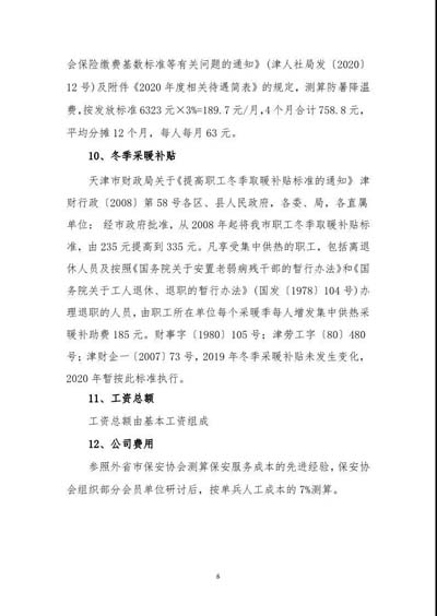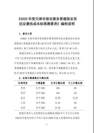 天津市保安協(xié)會(huì)發(fā)布《2020年度天津市保安服務(wù)普通保安員法定最低成本標(biāo)準(zhǔn)測(cè)算表》及編制說(shuō)明。