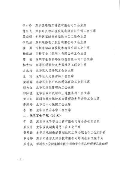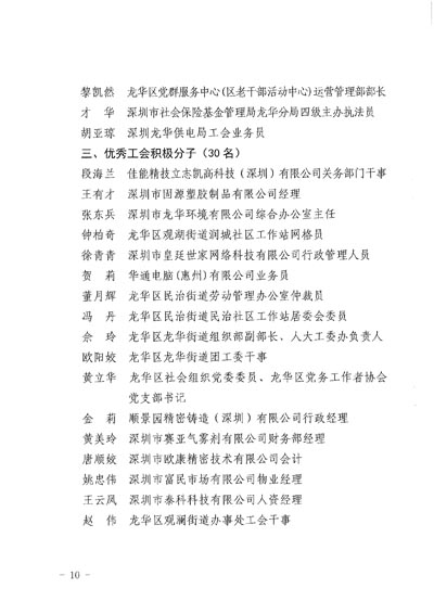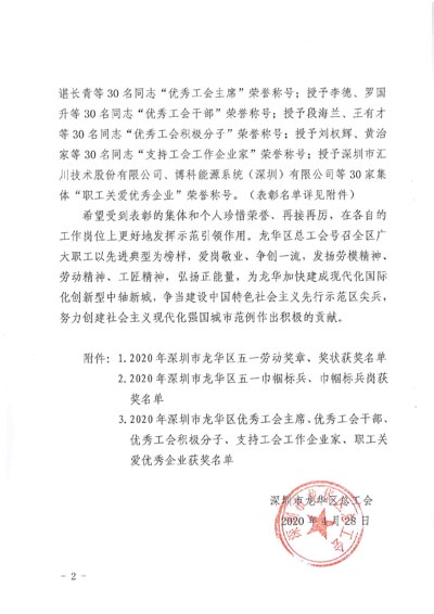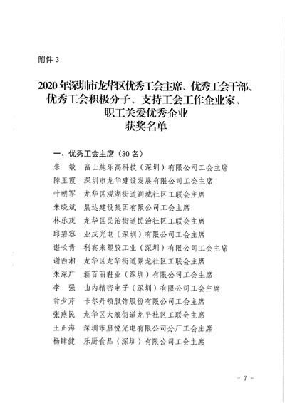 3.2020年深圳市龍華區優秀工會主席、優秀工會干部、優秀工會積極分子、支持工會工作企業家、職工關愛優秀企業獲獎名單。